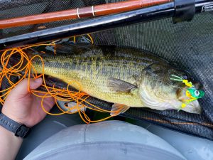 フローターのバスフライは楽し。Fun Flyfishing, Bass on Float tube.